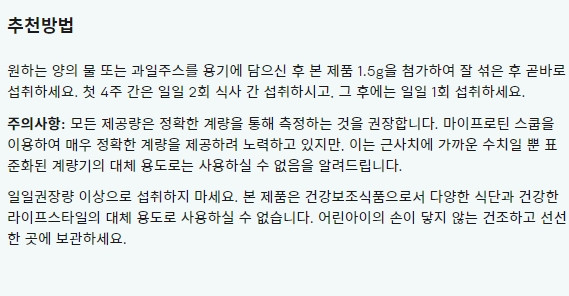 주의사항 : 모든 제공량은 정확한 계량을 통해 측정하는 것을 권장합니다.