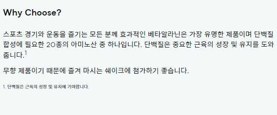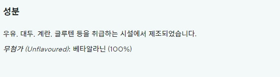 (파우더 25g 당 열량 103kcal, 단백질 20g, 탄수화물 1.8g)