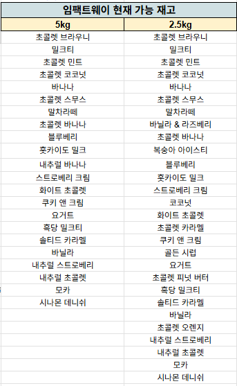 - 12/16일 기준 임팩트웨이 주문 가능한 맛 LIST -