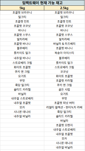 - 12/26일 기준 임팩트웨이 주문 가능한 맛 LIST -