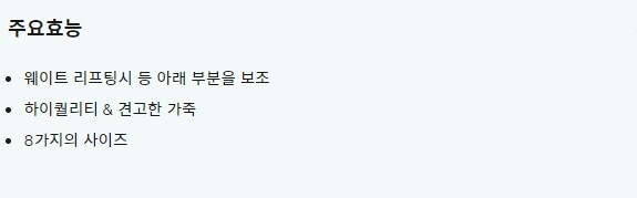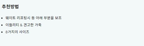 허리를 잡아주는 제품입니다. 허리 부상을 막아주고 퍼포먼스를 올려줄거에요.