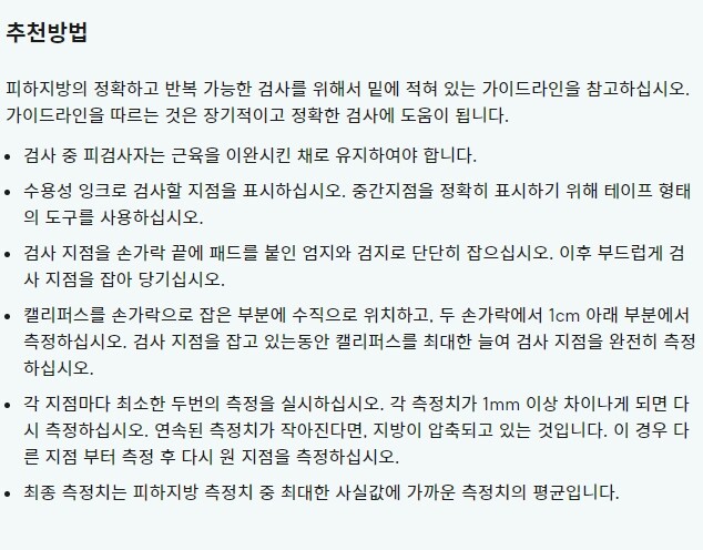 인바디와 비슷한 수치를 바로바로 잡아주는 캘리퍼스 입니다.