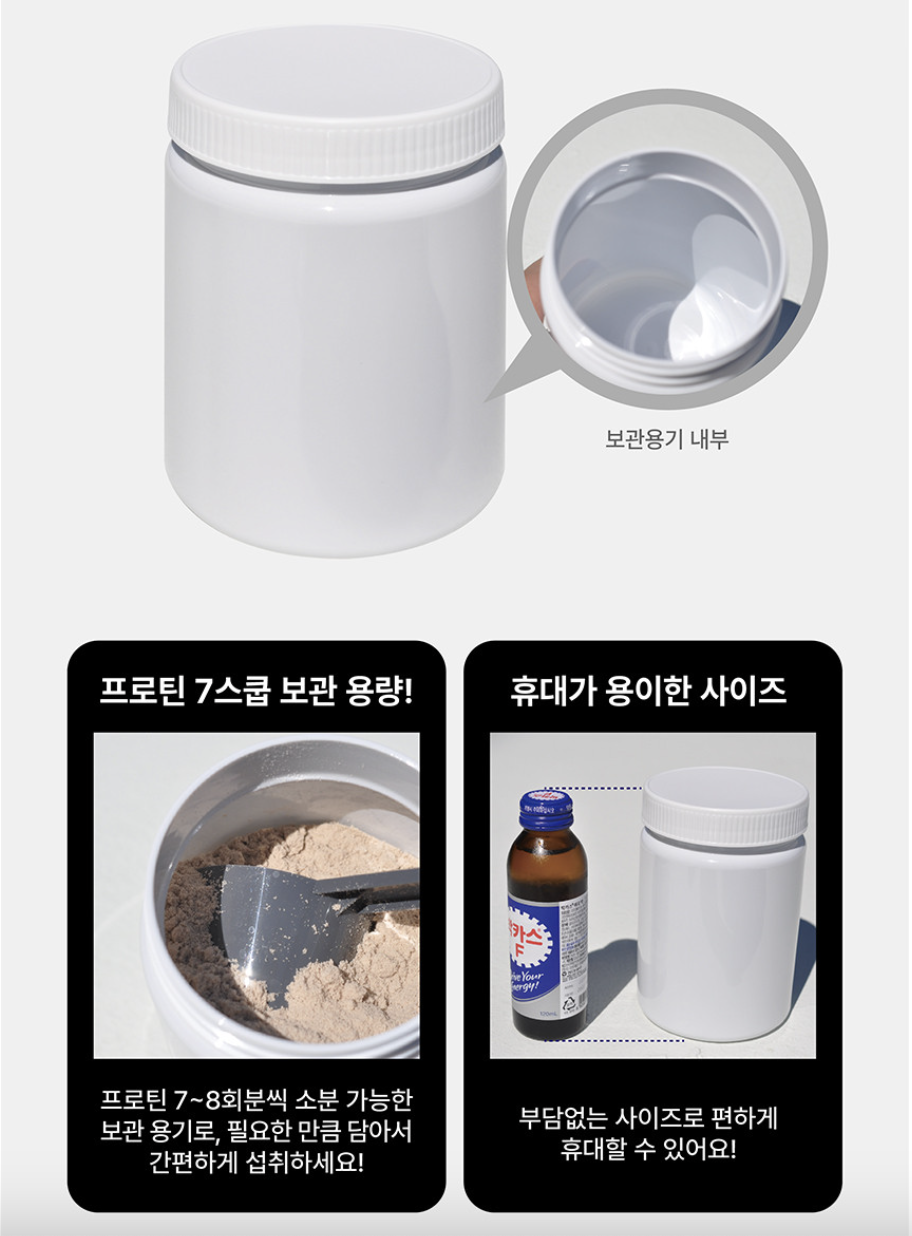 위생적으로 프로틴 파우더를 보관할 수 있습니다.